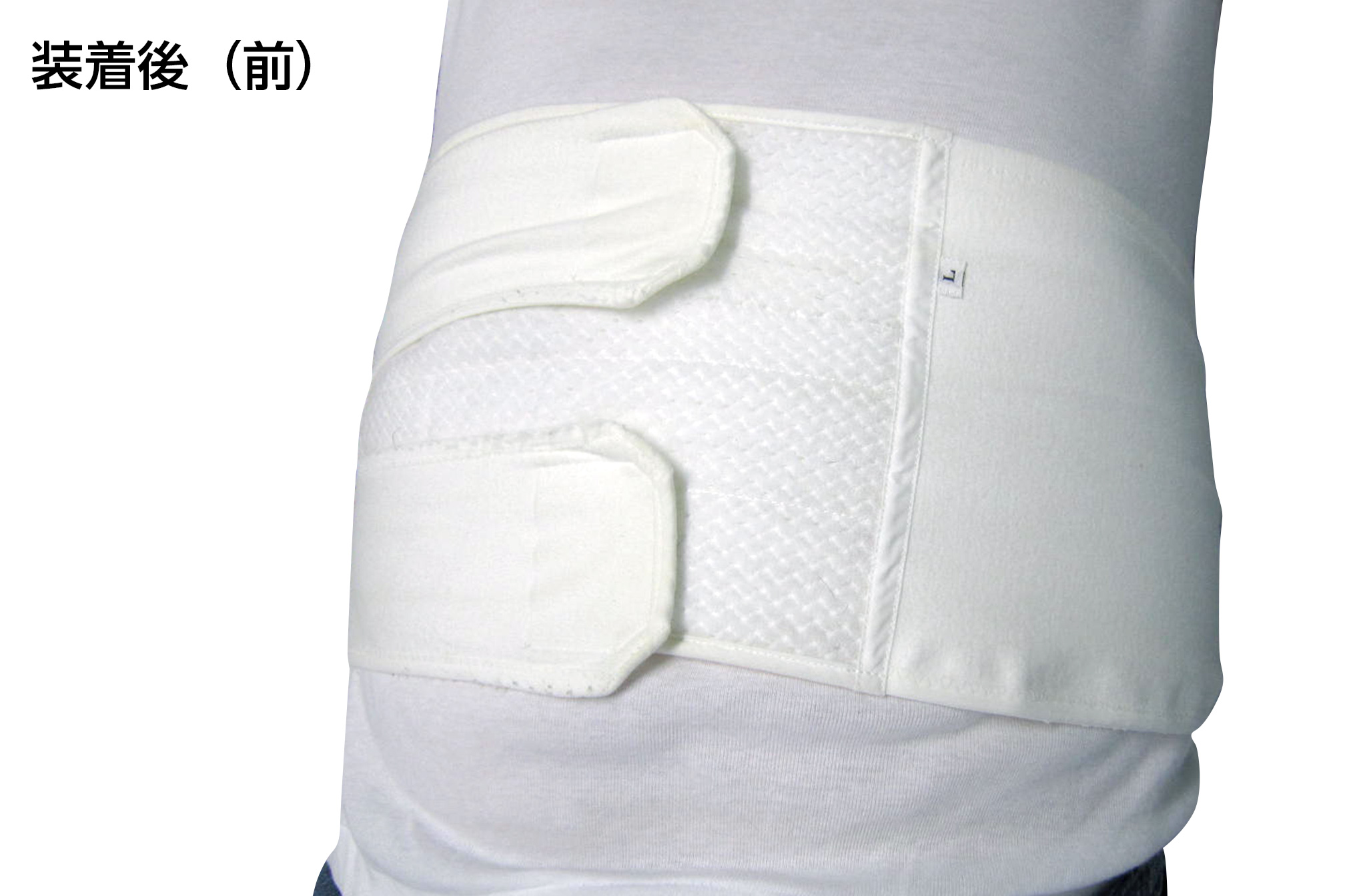 - 二重生地でしっかりと固定でき、安心感を与え、ヘルニア部の圧迫固定が確実です