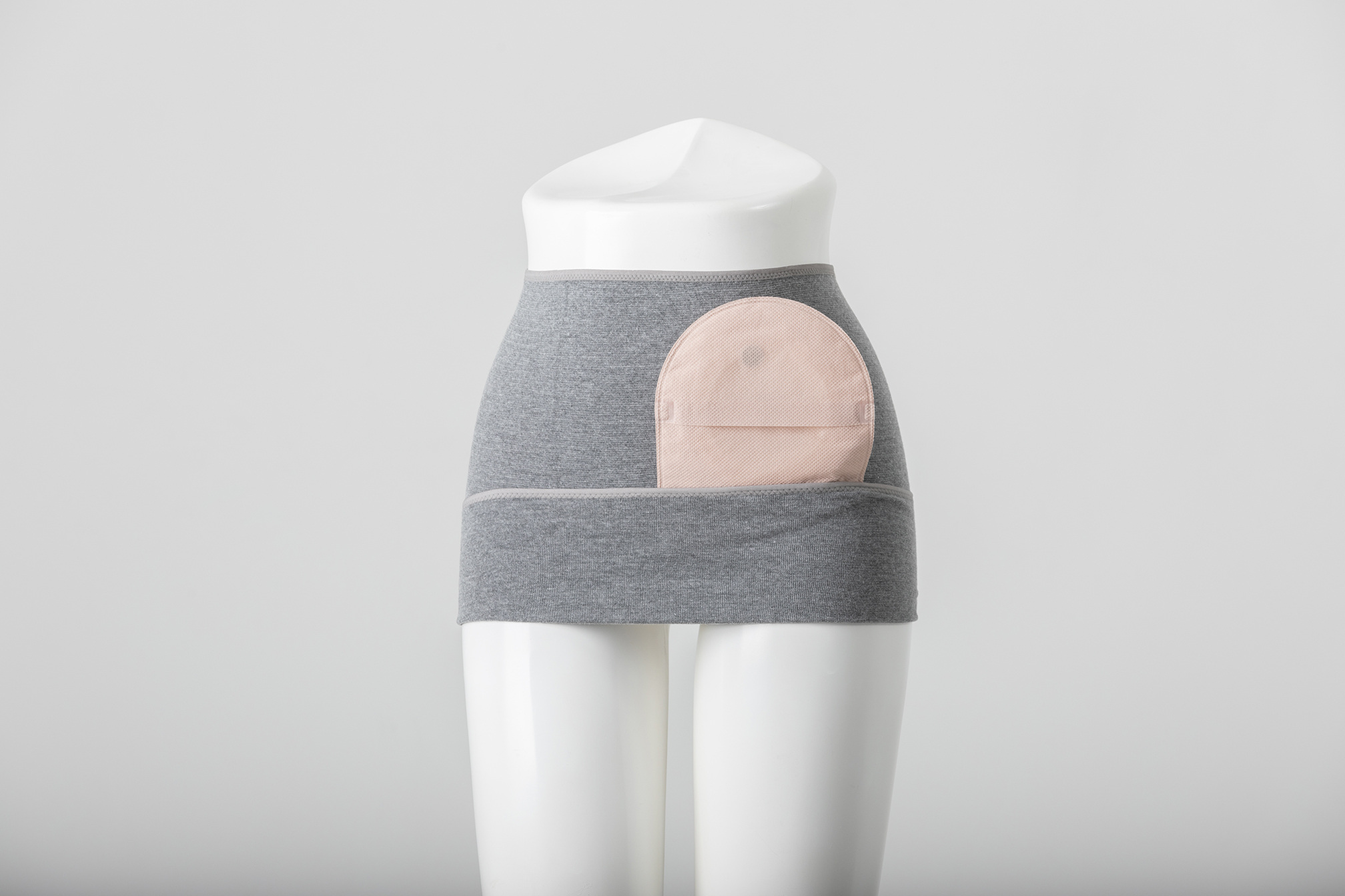 - 腹帯を横に切り込みを入れ、ストーマ装具を外側に引き出して上に折り曲げると、装具の安定と保護になります