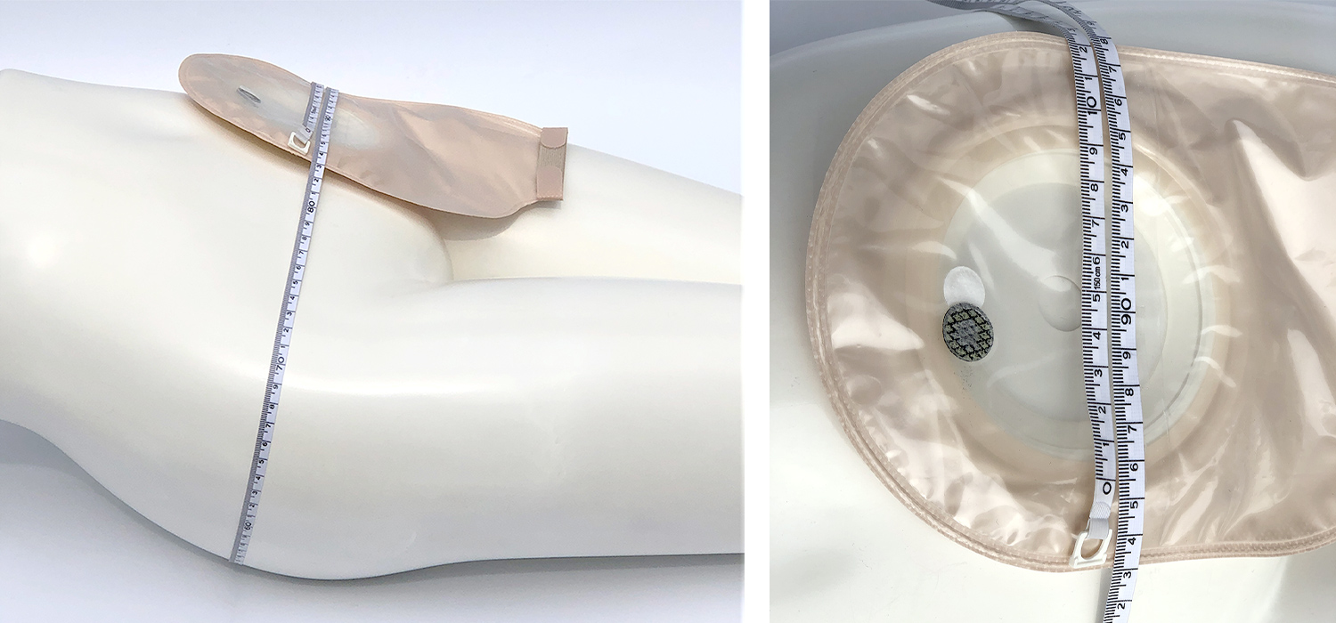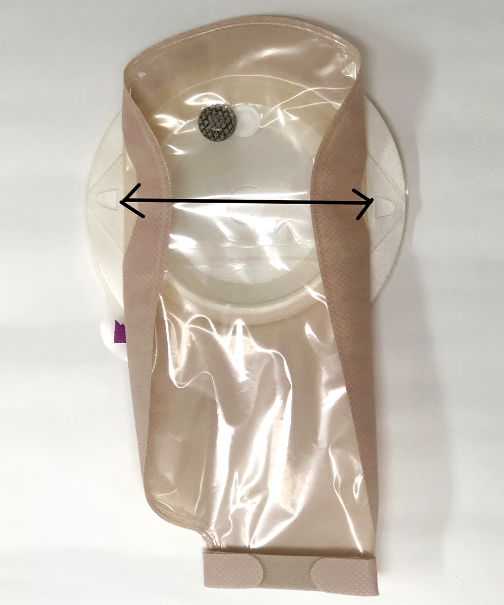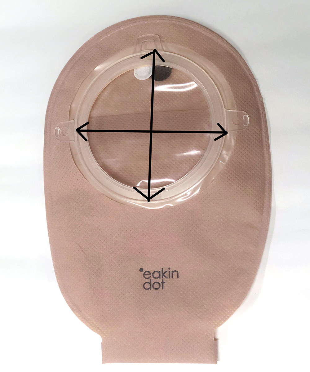 装具によって面板とパウチの接合部分の直径が異なります。下図の要領でお測りください。